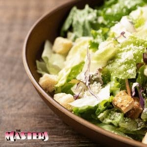 With romaines, parmesan cheese, croutons, and caesar dressing.